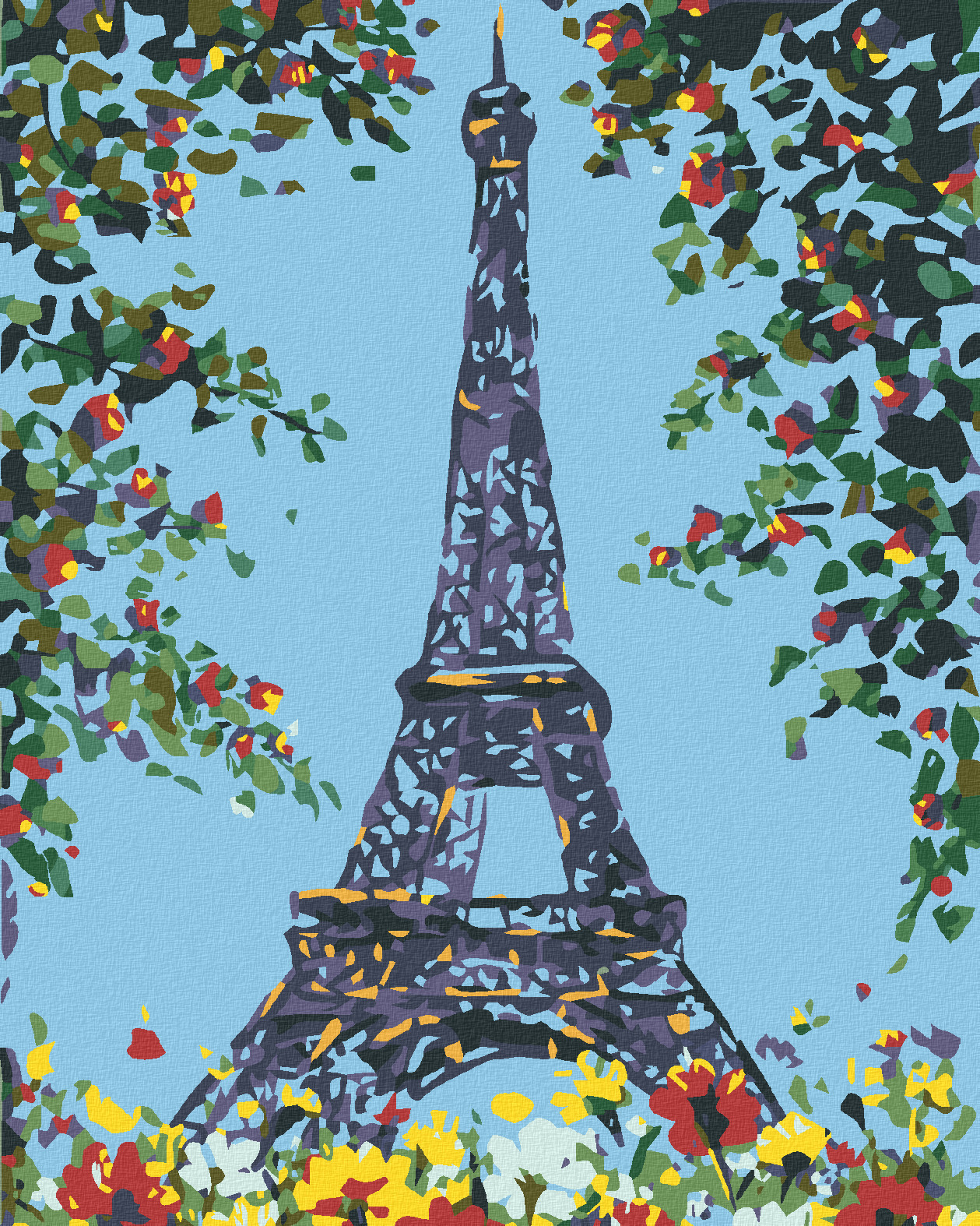 Malování podle čísel - KVĚTINOVÁ EIFFELOVA VĚŽ - 80x100 cm, bez rámu a bez vypnutí plátna