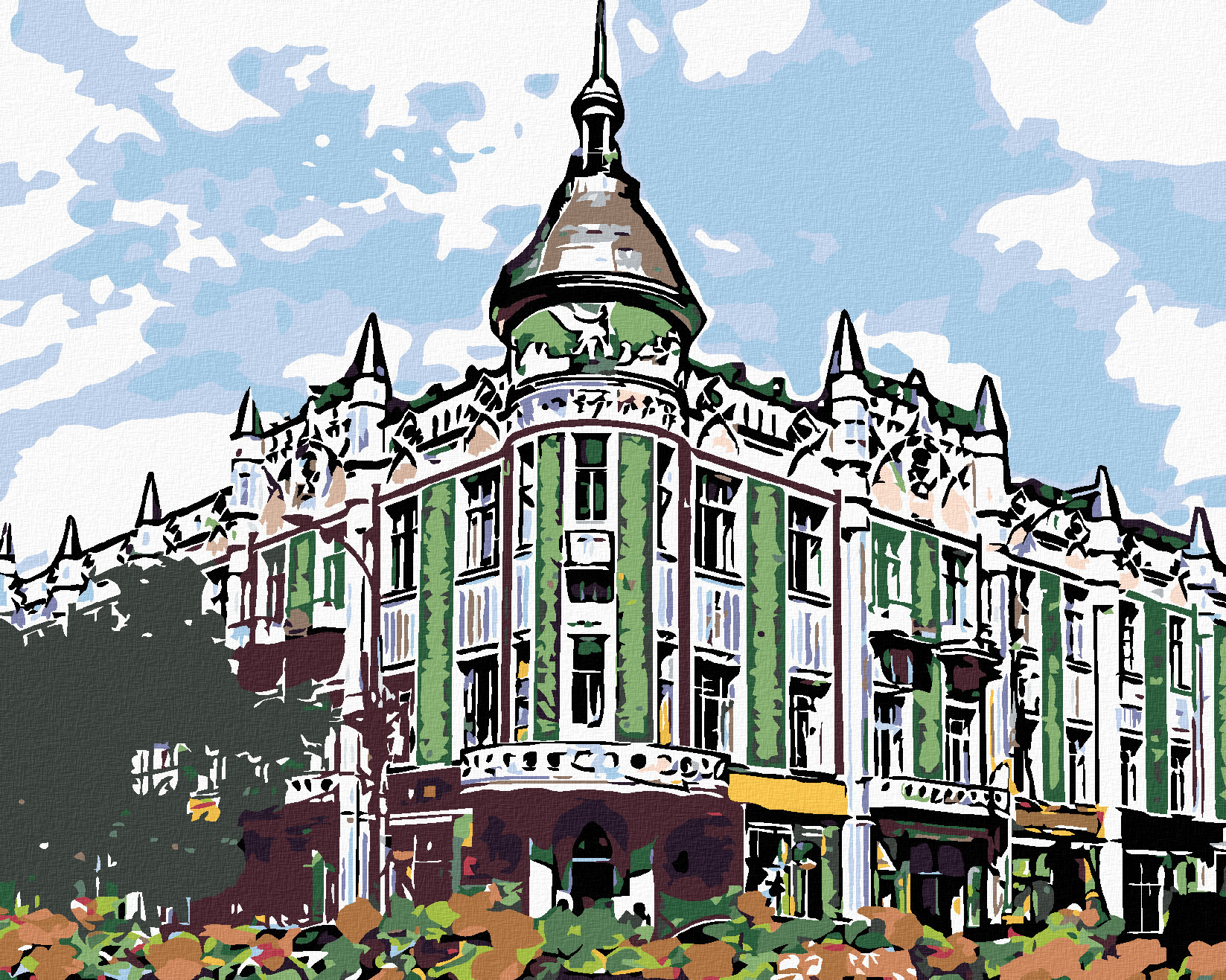 Malování podle čísel - BUDOVA NA ROHU ULICE - 80x100 cm, vypnuté plátno na rám