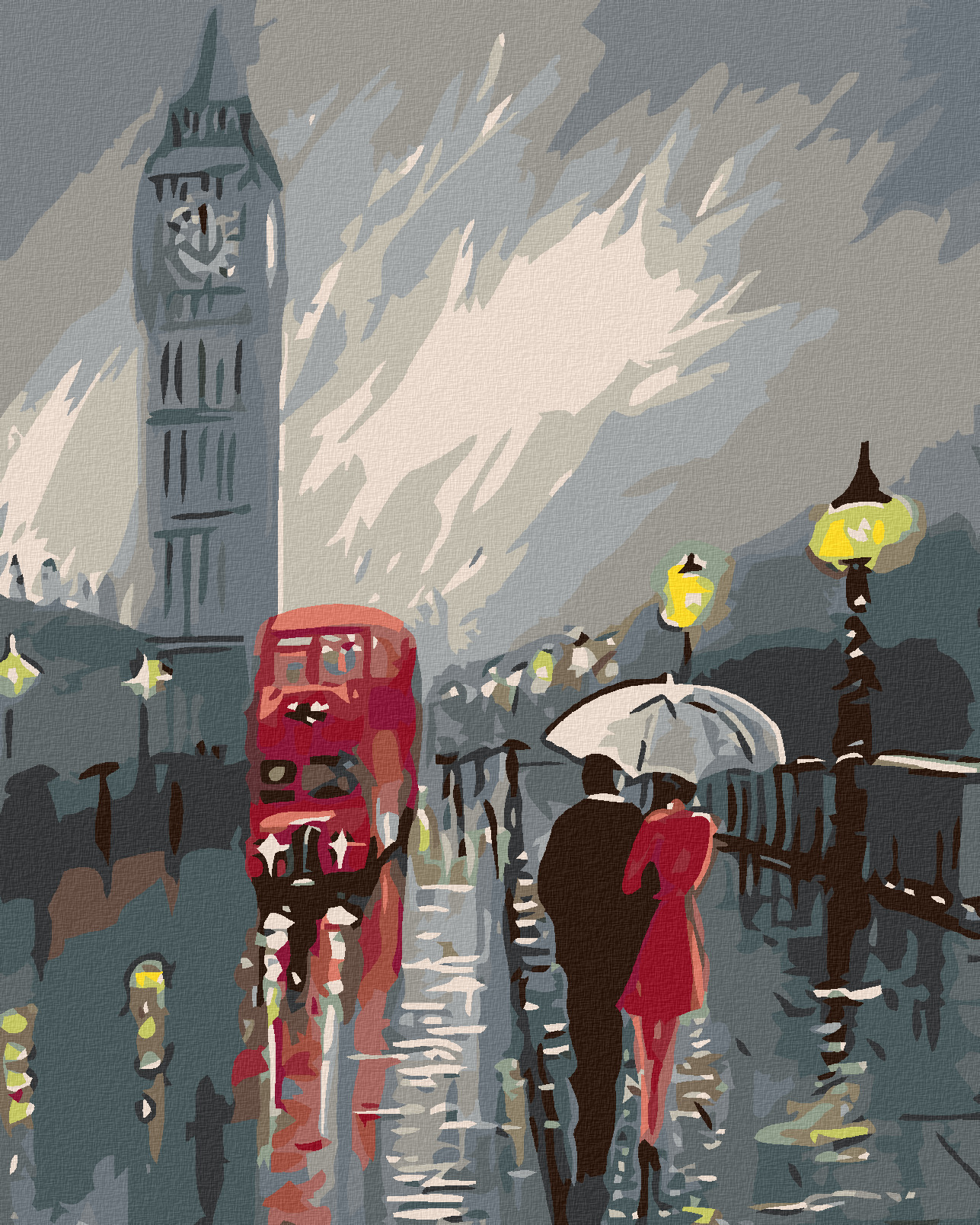 Malování podle čísel - BIG BEN V DEŠTI - 80x100 cm, bez rámu a bez vypnutí plátna