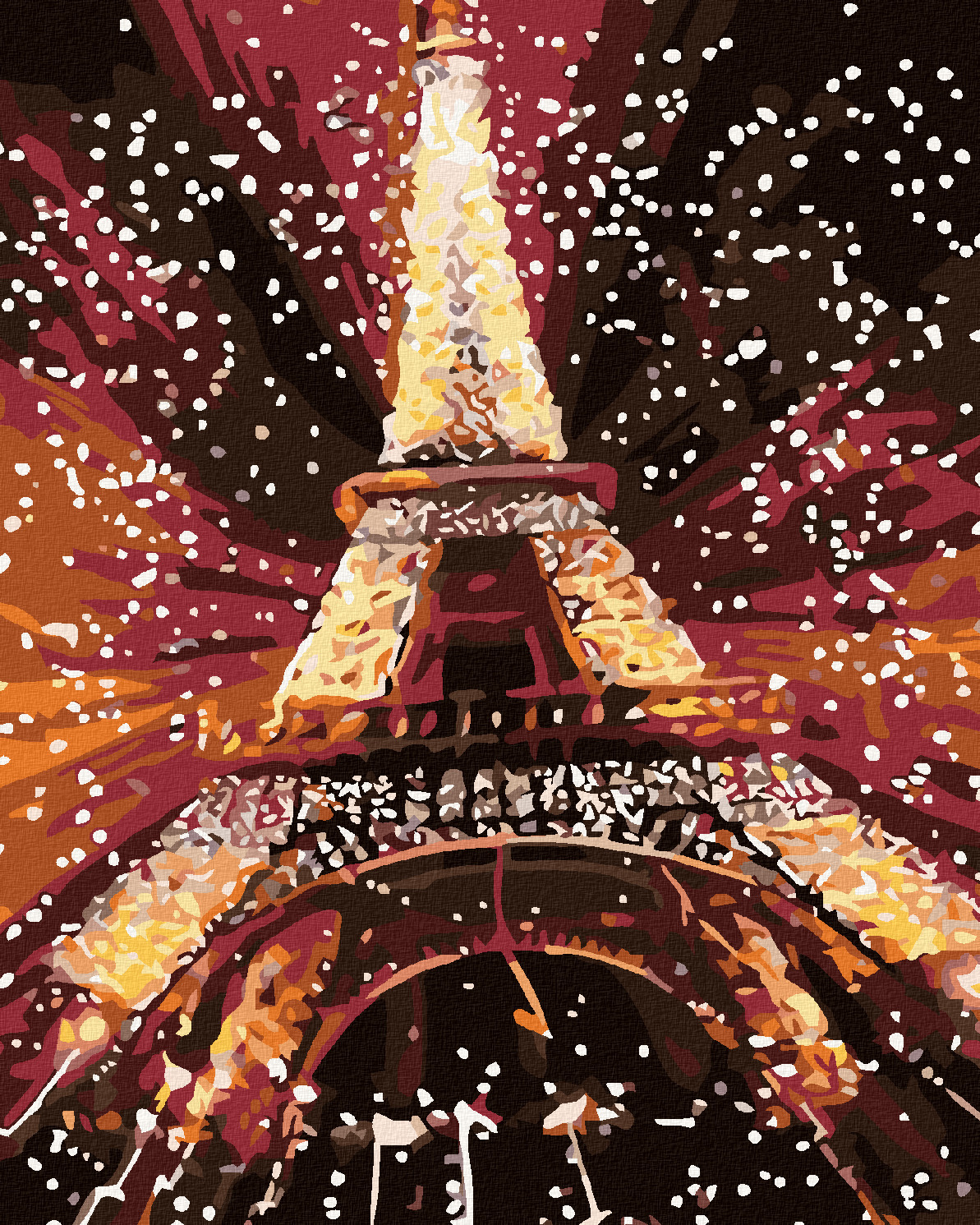 Malování podle čísel - EIFFELOVA VĚŽ S OSVĚTLENÍM - 40x50 cm, vypnuté plátno na rám