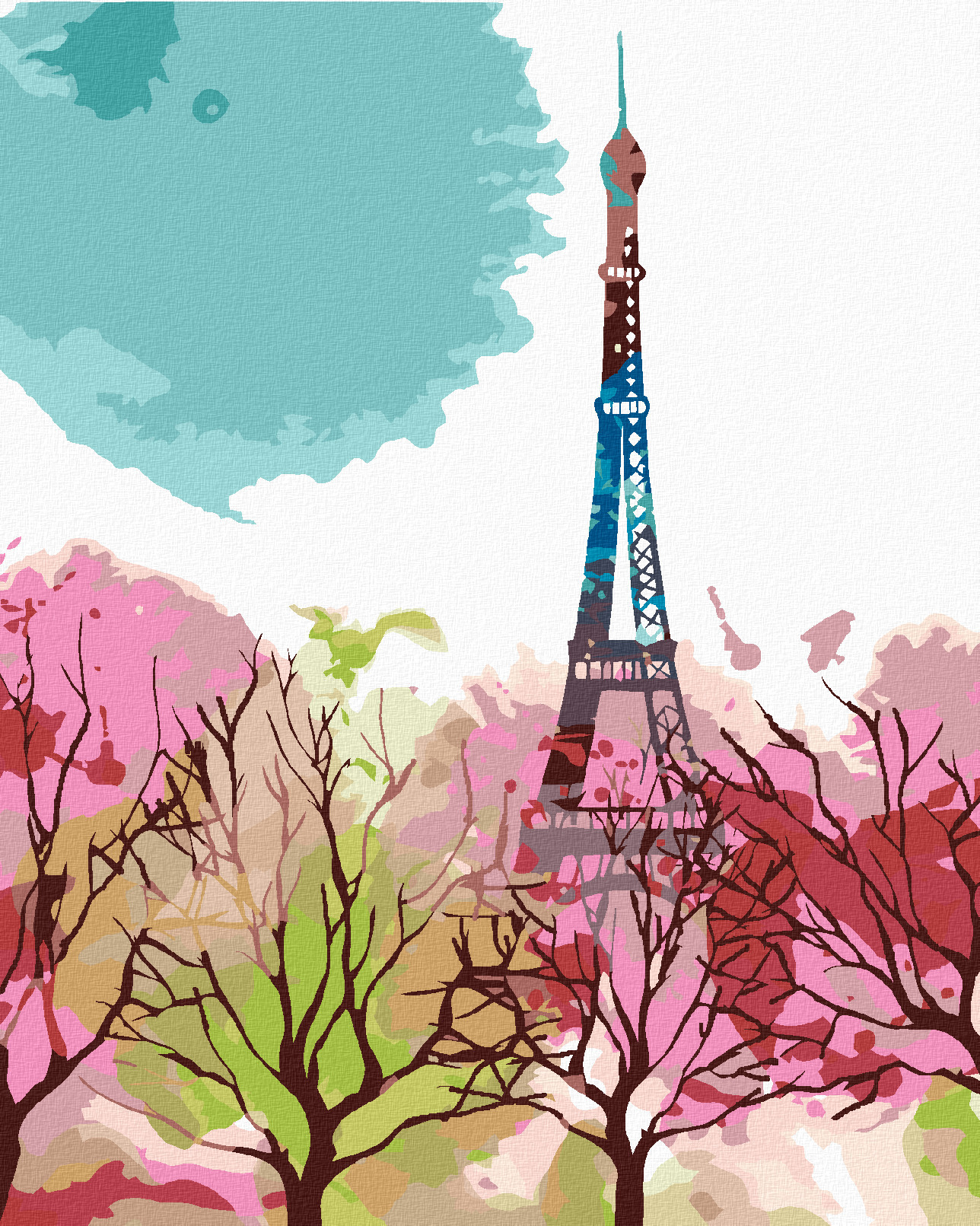 Malování podle čísel - ABSTRAKTNÍ EIFFELOVA VĚŽ A STROMY - 80x100 cm, vypnuté plátno na rám