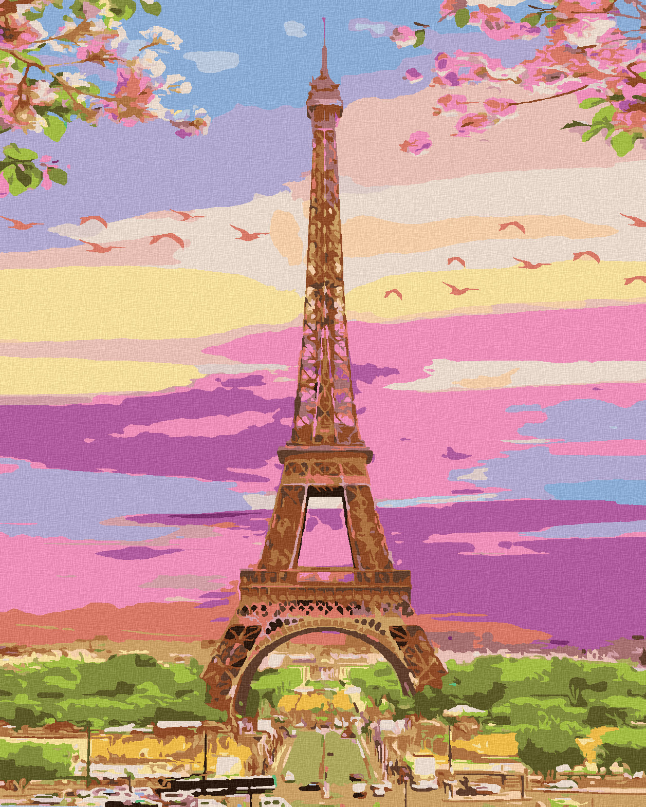 Malování podle čísel - EIFFELOVA VĚŽ V JARNÍCH BARVÁCH - 40x50 cm, bez rámu a bez vypnutí plátna