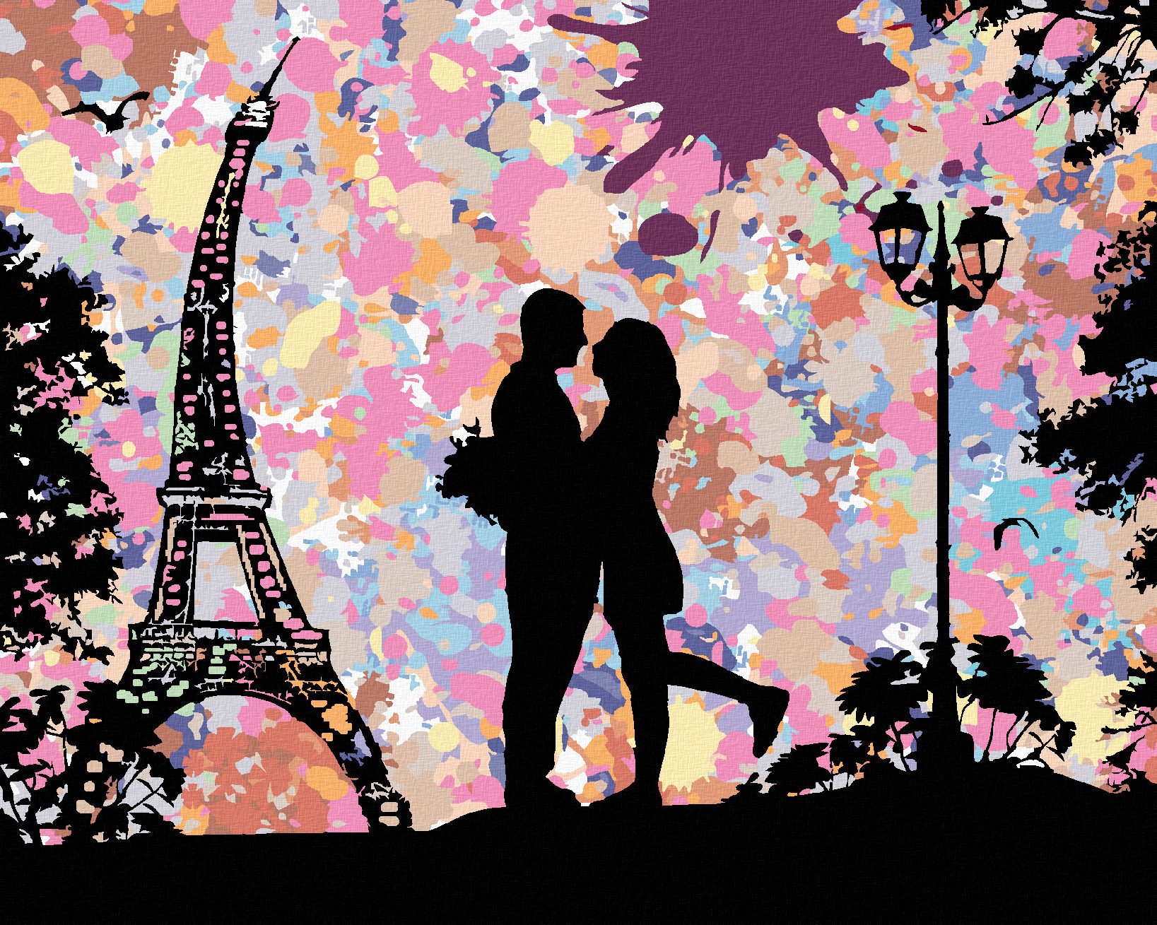 Malování podle čísel - MILENCI A ABSTRAKTNÍ EIFFELOVA VĚŽ - 40x50 cm, vypnuté plátno na rám
