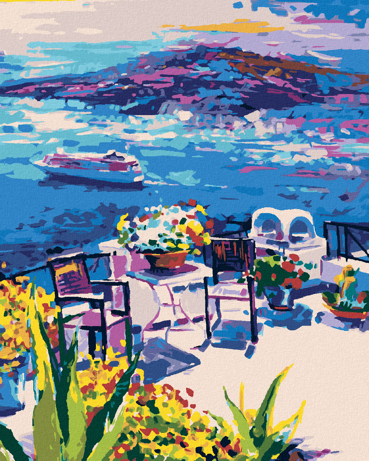 Malování podle čísel - TERASA NA SANTORINI - 40x50 cm, vypnuté plátno na rám