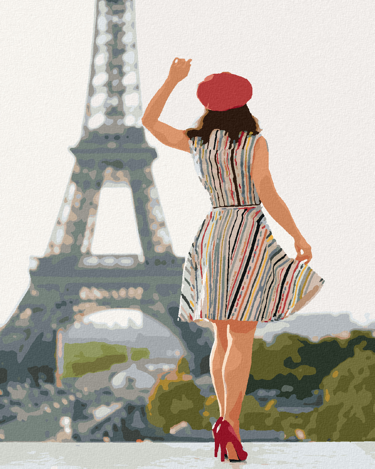Malování podle čísel - ŽENA U EIFFELOVY VĚŽE - 40x50 cm, bez rámu a bez vypnutí plátna
