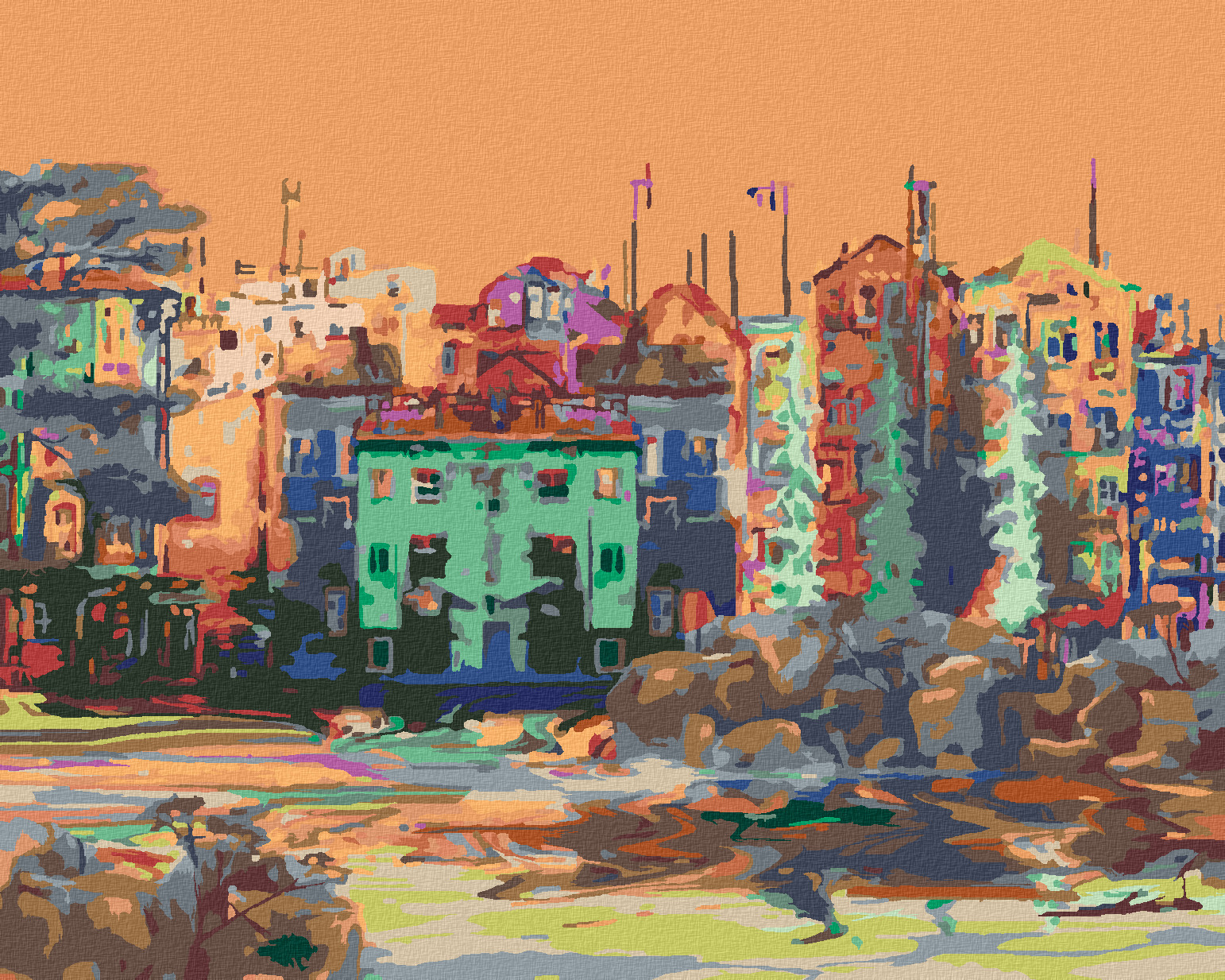 Malování podle čísel - BAREVNÉ DOMY - 80x100 cm, vypnuté plátno na rám