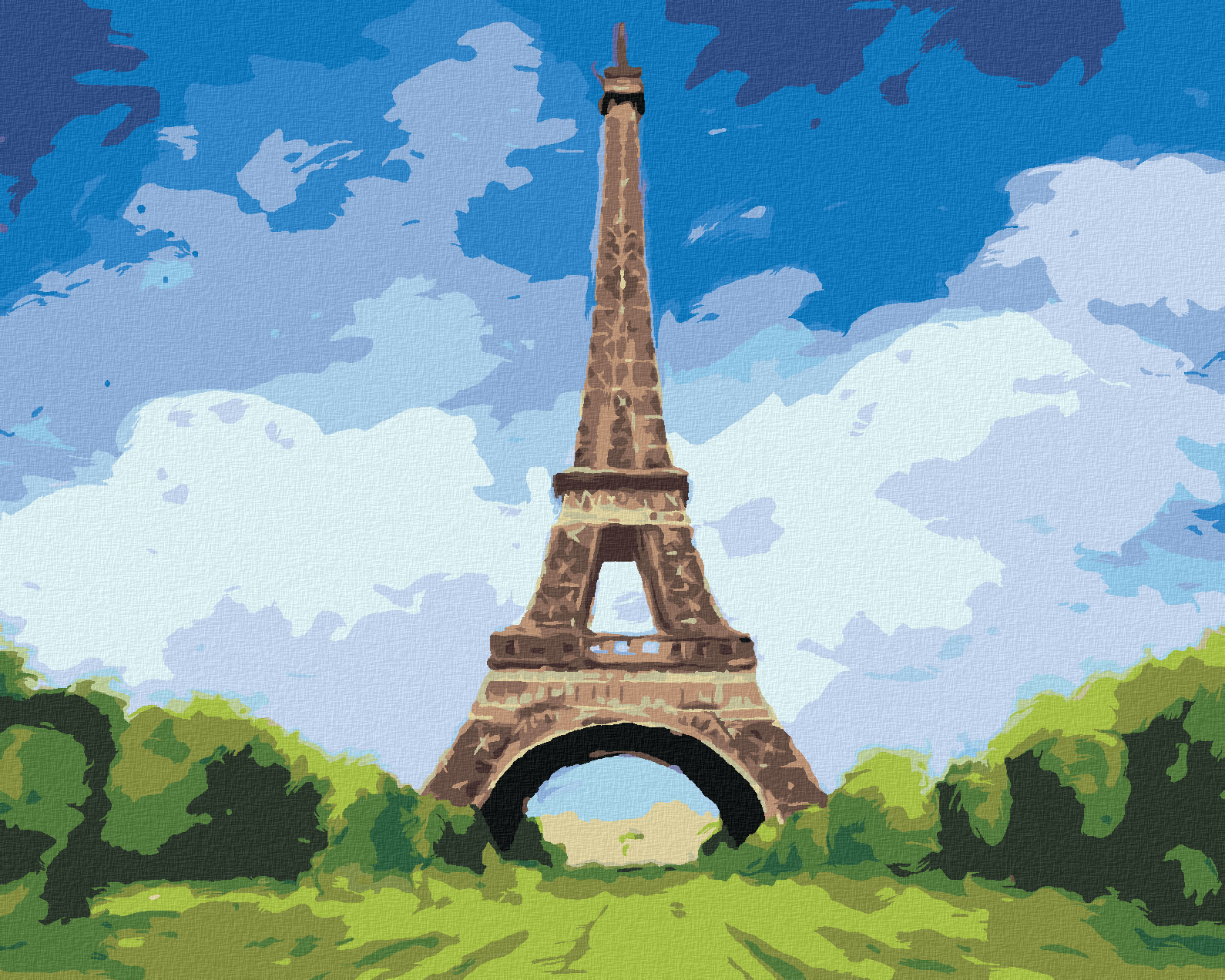 Malování podle čísel - EIFFELOVA VĚŽ A JASNÁ MODRÁ OBLOHA - 40x50 cm, vypnuté plátno na rám