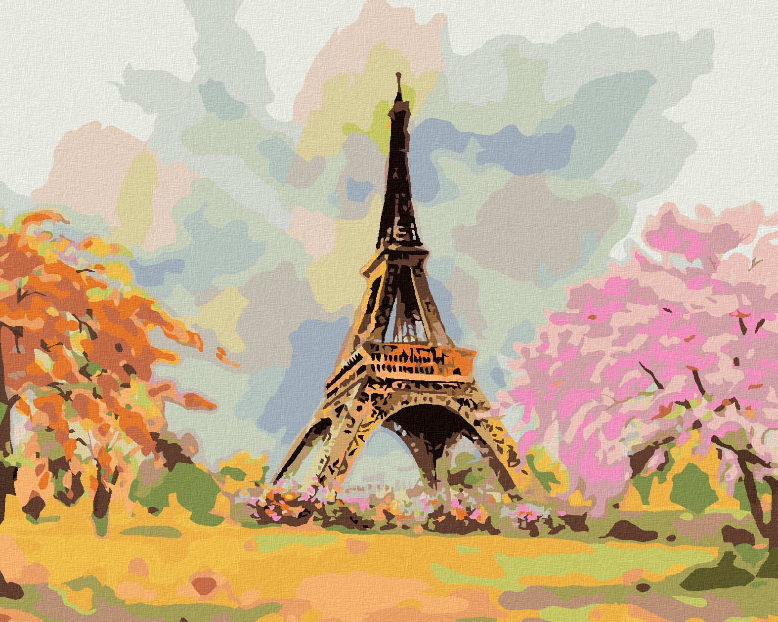 Malování podle čísel - EIFFELOVA VĚŽ A RŮŽOVÝ STROM - 80x100 cm, vypnuté plátno na rám