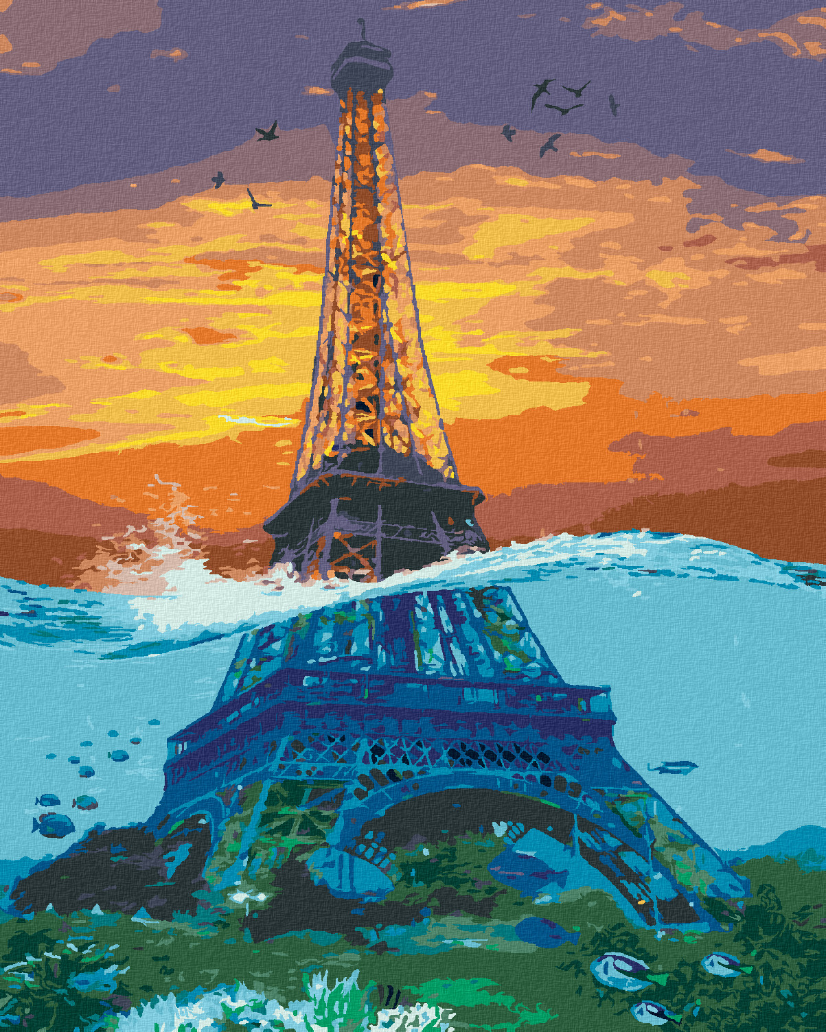 Malování podle čísel - EIFFELOVA VĚŽ POD VODOU - 40x50 cm, vypnuté plátno na rám