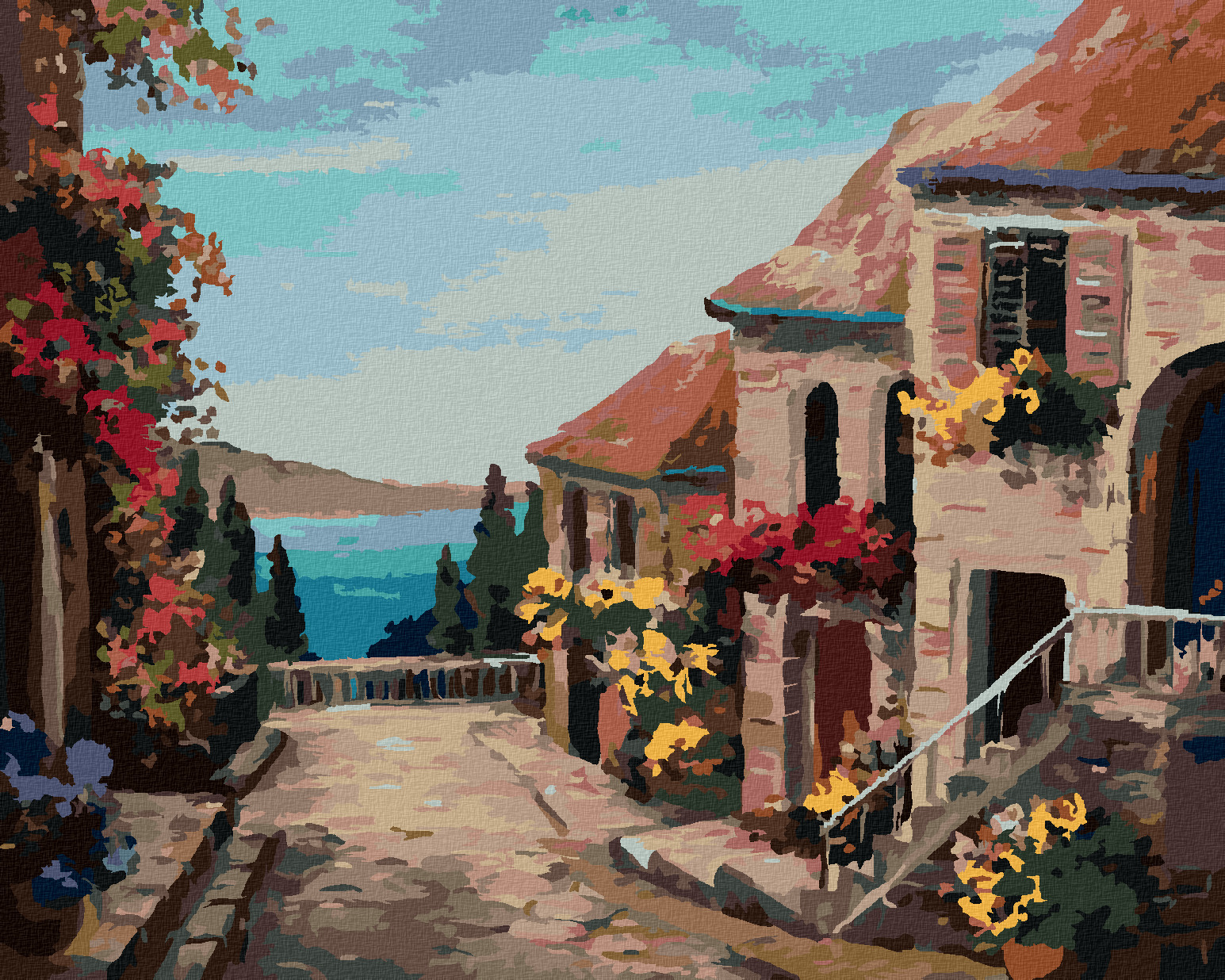 Malování podle čísel - DOMY BLÍZKO MOŘE - 80x100 cm, vypnuté plátno na rám