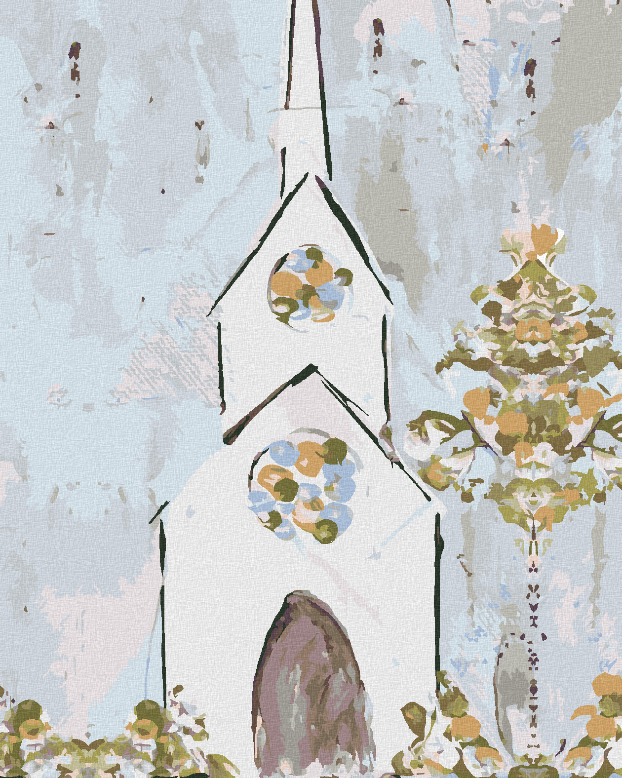 Malování podle čísel - BÍLÝ MALOVANÝ KOSTEL (HALEY BUSH) - 40x50 cm, bez rámu a bez vypnutí plátna