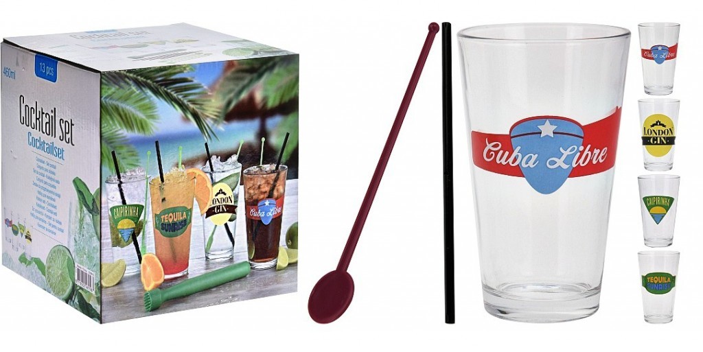 Sklenice na koktejly s míchátkem + muddler sada 13 ks EXCELLENT KO-CC2000200
