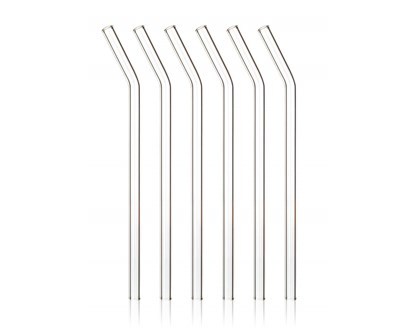 Sada 6 ks zalomených brček o rozměru 23 cm a průměru 1 cm se vyrábí z tvrdého boritokřemičitého skla, které je velmi odolné (mechanicky i teplotně +300 / -40 stupňů). Výhodou je dlouhá životnost, hygienická nezávadnost a snadná údržba (lze mýt v myčce na nádobí). Součástí balení je i čistící kartáček.