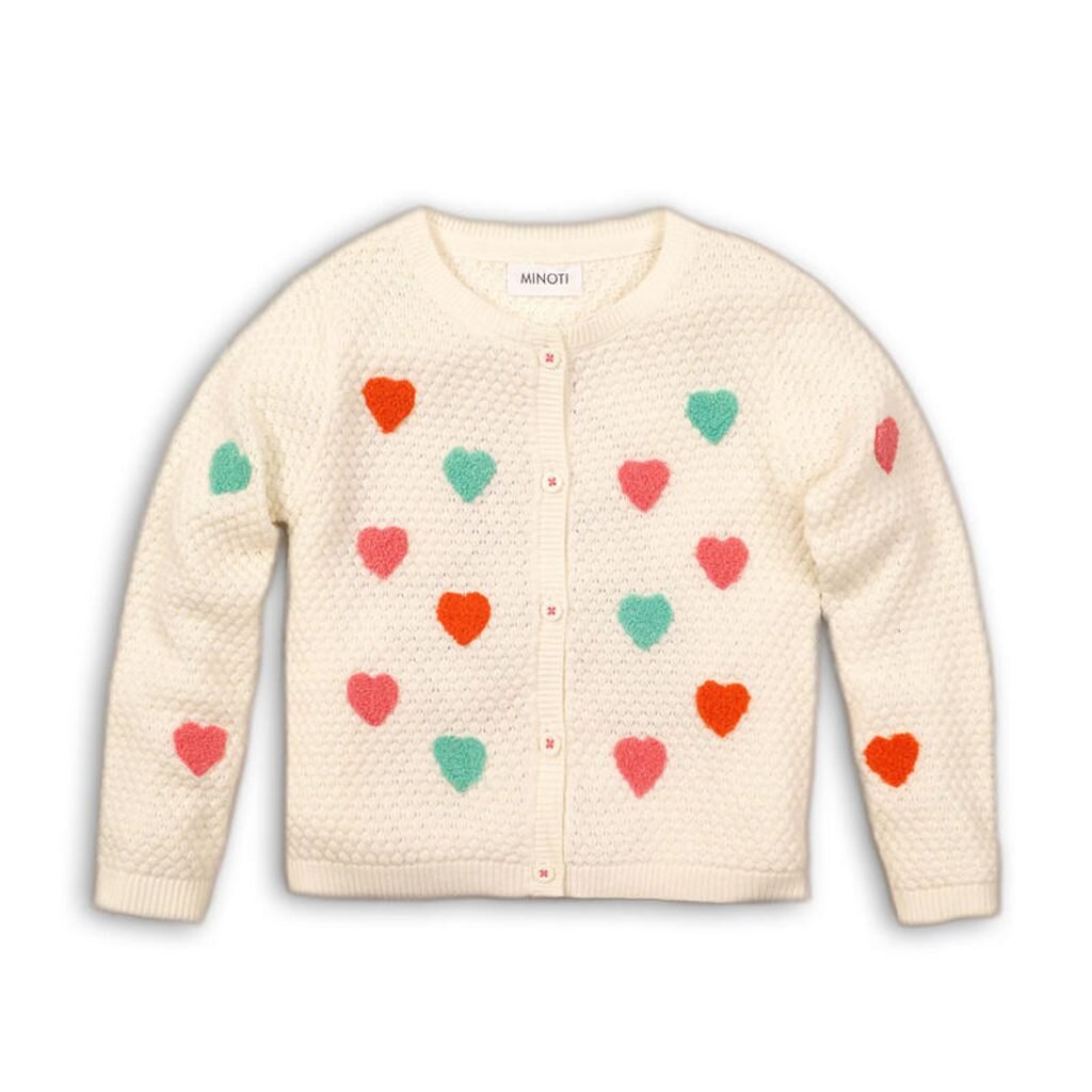 Svetr dívčí celopropínací, Minoti, UNICORN 9, bílá - 110/116