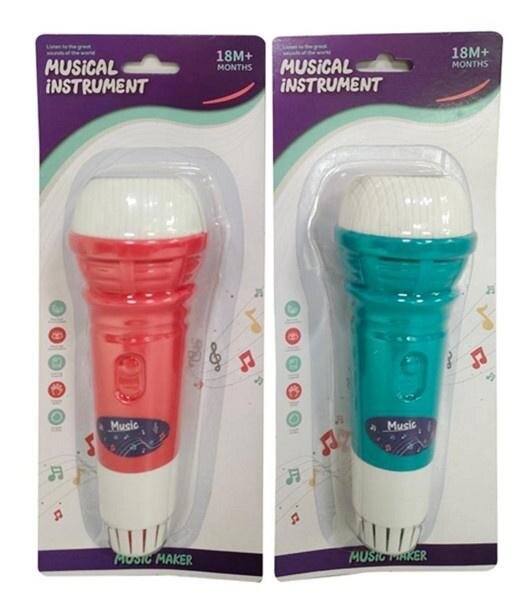 Klasyczny mikrofon skonstruowany tak, by odbijać dźwięk ludzkiego głosu. Produkt występuje w kiku wersjach kolorystycznych, wybierany losowo. Cena dotyczy jednej sztuki. Dla dziecka powyżej 18 miesiąca życia. Produkt zapakowany w kartonową podstawkę z przezroczystym kloszem