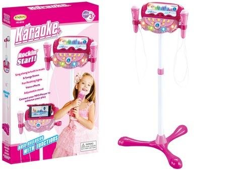 Dwa Mikrofony ze Statywem Dźwięk Diody MP3 Karaoke Różowy Cudowny koncert z efektami świetlnymi to coś co mały artysta na pewno chciałby pokazać. Zmysł słuchu i poczucie rytmu, dzięki zabawie polepszą się. Zaproś mamę lub tatę do zabawy, dwa mikrofony pozwolą na wykonanie w duecie! Zestaw posiada...