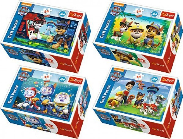 Puzzle mini 54 dílků, 4 druhy, Paw Patrol, rozměr poskládaného obrázku 20x13 cm prečítať celé