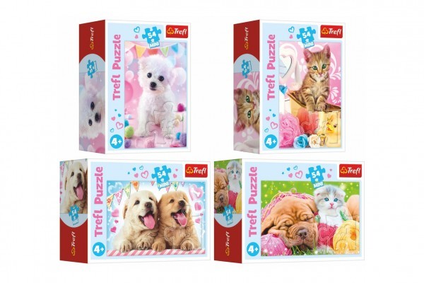 Minipuzzle 54 dílků Domácí zvířata 4 druhy v krabičce 9x6.5x4cm