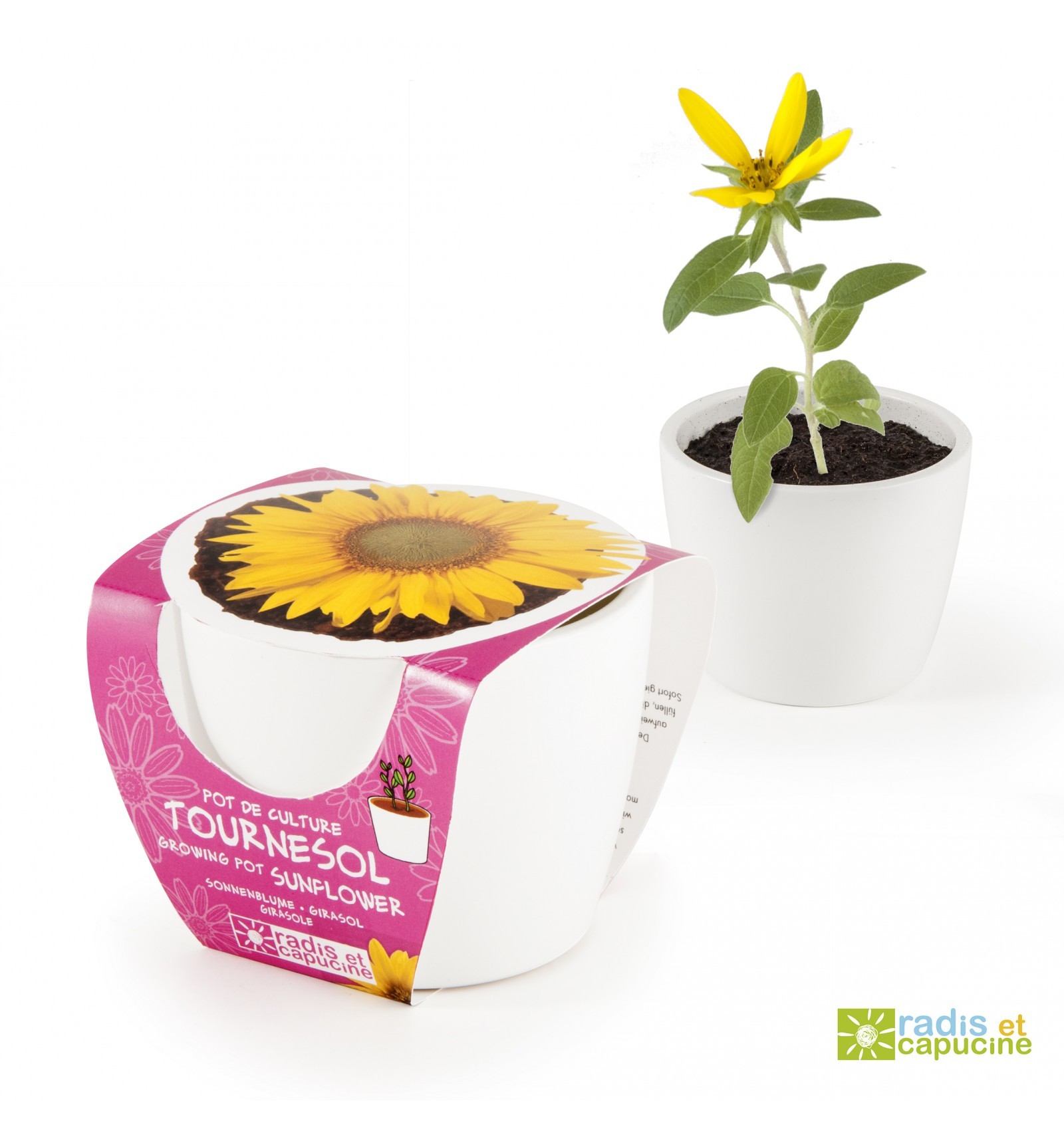 Mini zahrádka - Mini květináč Ceramic se slunečnicíVytvořte si doma vlastní mini zahrádku! Produkty Radis et Capucine jsou ideálním způsobem, jak nejen dětem přiblížit záhady růstu a pěstování plodících rostlin a bylinek. Pro vypěstování je k dispozici stlačený instantní substrát s kokosovými...
