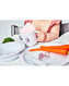 Protiskluzová guma na dně talíře, misky a hrnku udrží nádobí na místě,