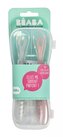 Silikonové lžičky pro nejmenší jsou šetrné k citlivým dětským dásním a navržené pro hladký přechod ze savičky na lžičku. Dlouhá rukojeť usnadňuje rodiči nabírání z misky i skleničky bez zašpinění rukou. Praktické pouzdro umožňuje hygienické přenášení lžiček např. v přebalovací tašce.