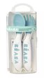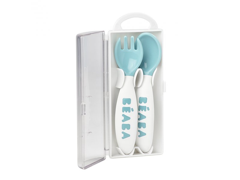 Plastová lžička a vidlička pro první samostatné krmení má ideální tvar pro dětská ústa. Tvar držadla usnadňuje dítěti držení lžičky i vidličky a je vhodný pro praváky i leváky. Praktické pouzdro umožňuje hygienické přenášení lžičky a vidličky např. v přebalovací tašce.