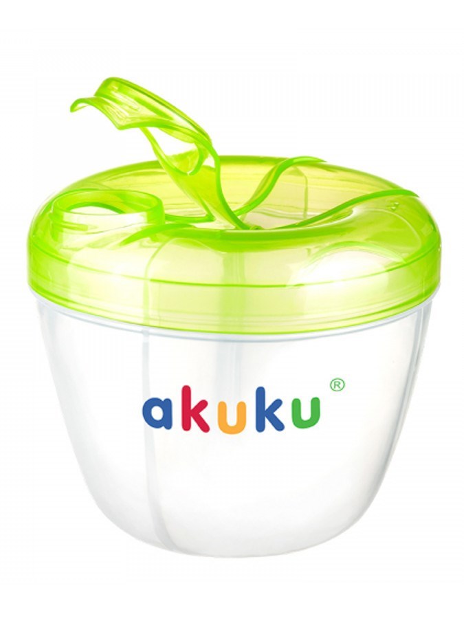 Dávkovač sušeného mléka Akuku. Speciální nádobka se 4 samostatnými přihrádkami, díky kterým lze odměřit a připravit 4 dávky kojeneckého sušeného mléka. Nádobka je velmi praktická především při procházkách a cestování. Neobsahuje BPA. Vhodné pro děti od 0 měsíců. Vhodné do myčky nádobí i sterilizátoru.