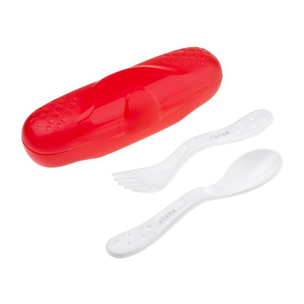 Sada dětských příborů Akuku, která je ideální pro bezpečné a pohodlné krmení dítěte jak doma, tak i během cestování. Všechny části mají bezpečné kulaté tvary přizpůsobené citlivým dětským dásním. Sada obsahuje lžičku a vidličku v praktickém pouzdru. Určeno pro děti od 12 měsíců. Rozměry: cca 13 cm. Bez BPA.