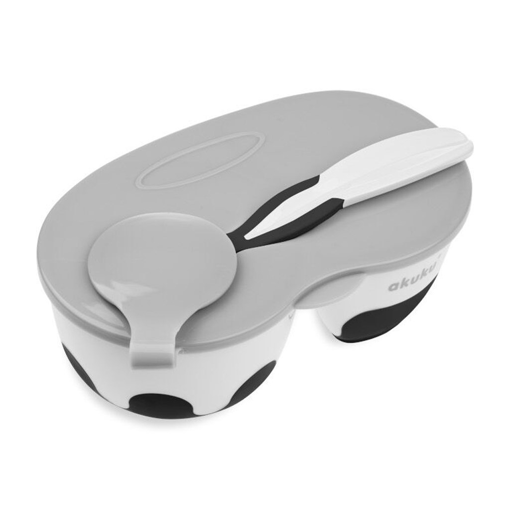 Dětská dvoukomorová miska se lžičkou Akuku bílo-černá