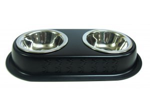 Praktická dvojmiska v elegantním stojanu. Nabízíme Vám široký sortiment kvalitních nerezových misek. Nerezové misky vynikají vysokou odolností a materiálem, který se velmi snadno udržuje. Misky se hodí jak pro štěňata tak pro dospělé psy, tak i kočky. Průměr: 13,5 cm Objem: 0,35 l Barva: Černá