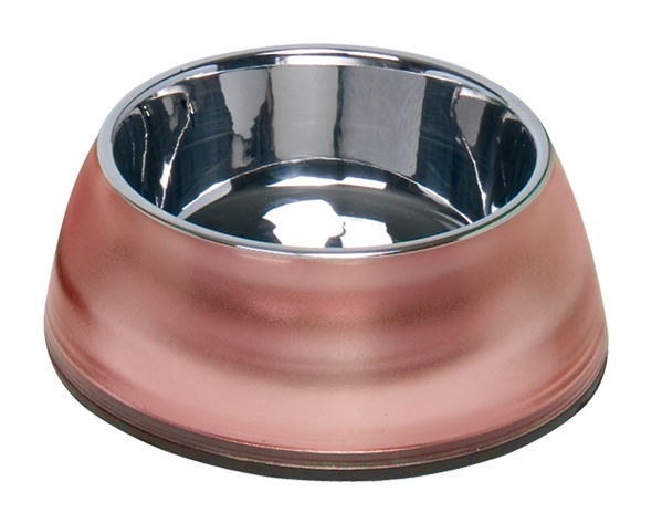 Nerezová leštěná miska, která je vložená do lesklého pevného plastového průhledného pouzdra. Barva matná červená. Protiskluzový odnímatelný kroužek na spodní straně misky. Pouzdro je pevné, robustní, odolné vůči nárazům a poškrábání. Lze mýt v myčce.   prečítať celé