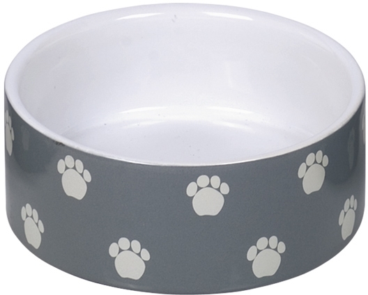 Kvalitní keramická miska Nobby PATA na krmivo nebo vodu o rozměrech 12,0 x 4,5 cm. Miska je šedé barvy a má lesklý povrch. Po obvodu vnější strany je zdobená motivem psích paciček. Objem misky je 0.25 litrů. Výrobce Nobby (Německo) keramická miska barva šedá motiv psích paciček lesklá objem 0,25 litrů rozměry Ø 12,0 x 4,5 cm
