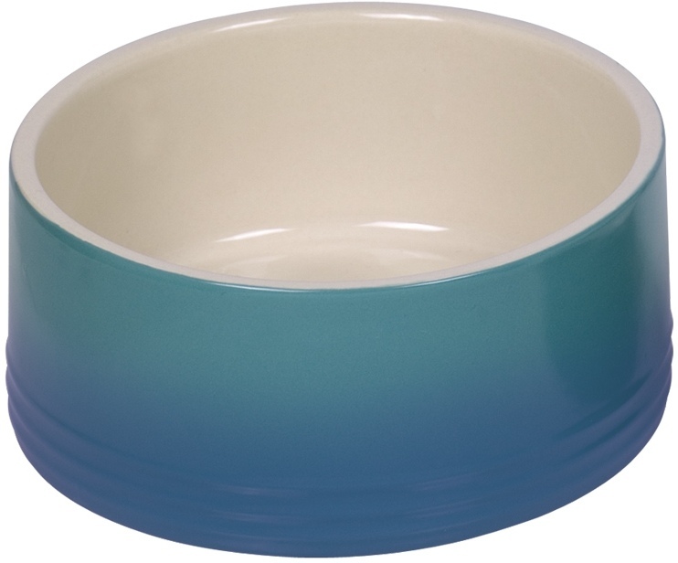 Kvalitní keramická miska Nobby GRADIENT na krmivo nebo vodu o rozměrech 18,0 x 7,0 cm. Barva vnitřní stěny je krémová, venkovní stěna je modrá s lehkým přechodem do ztracena. Výrobce Nobby (Německo) keramická miska barevný přechod do ztracena krémová a modrá barva objem 1,10 litrů rozměry Ø 18,0 x 7,0 cm