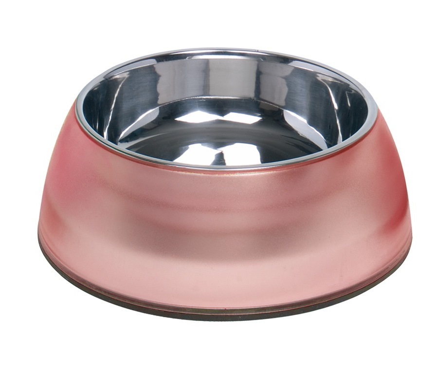 Nerezová leštěná miska, která je vložená do lesklého pevného plastového průhledného pouzdra. Barva matná červená. Protiskluzový odnímatelný kroužek na spodní straně misky. Pouzdro je pevné, robustní, odolné vůči nárazům a poškrábání. Lze mýt v myčce.   prečítať celé