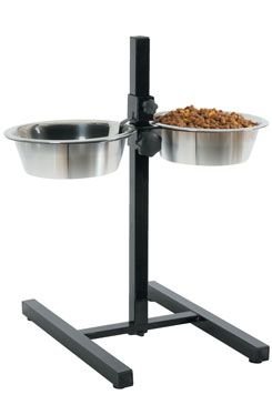 Stojan na misky v černé barvě. Dvě misky 1,5l jsou součástí balení.Nastavitelný stojan je vhodný pro střední plemena.Výška stojanu maximálně 46 cm. Výškové umístění misek je nastavitelné.Rozměry: 460 x 395 x 515 mm prečítať celé