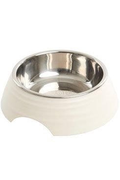 Tato miska se skládá z dvou částí. Vnitřní nerezová část lze vyjmout a lehce omýt.Vnější část je vyrobena z plastu melamin,který je zdravotně nezávadný. Na dně misky jsou gumové nožičky a miska proto neklouže po podlaze.