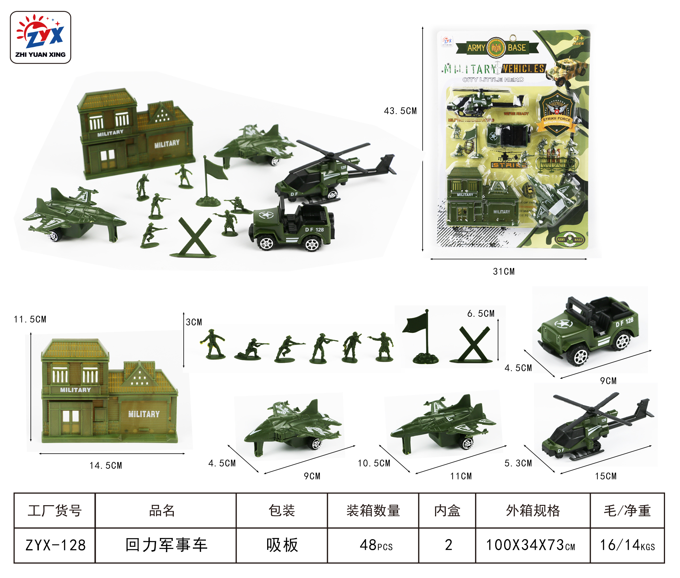 Vojenská technika. Rozměry domu 14,5x11,5 cm, auta 4,5x9 cm. Na zpětné natažení. prečítať celé