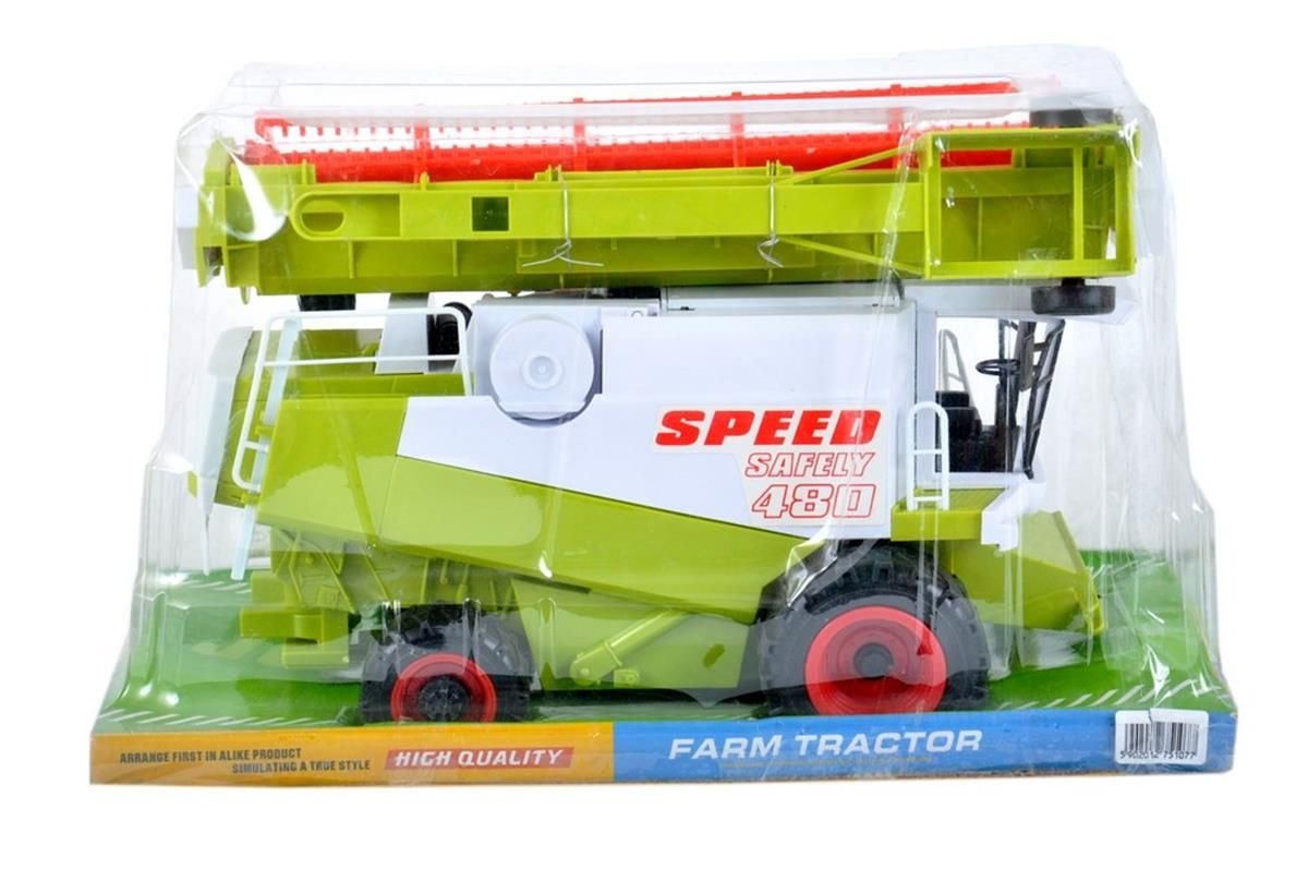 Kombajn má odnímatelné nože a pohyblivé žací nože. Tryska na vypouštění zrna je také pohyblivá. Vozidlo má velké výsuvné kola, takže po zatlačení stroje pokračuje v samostatné jízdě. Vše je vyrobeno z plastu. Hračka je určena pro děti od: 3+.