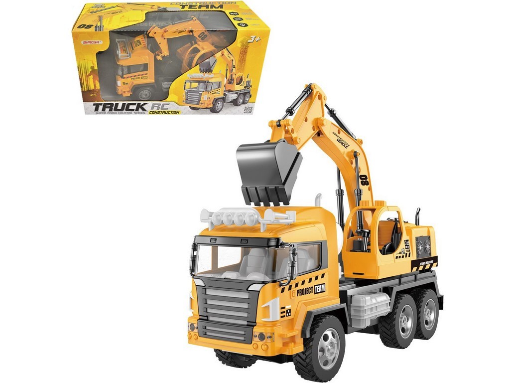Auto stavební, na dálkové ovládání, 4 kanál, se světelnými efekty.Skvělé stavební auto s praktickým ovládáním ve tvaru volantu se bude líbit všem nadšencům stavebních strojů.Hračka je určena pro děti 3+.Rozměr hračky je 15 x 26 x 8 cm.Materiál hračky je plast.Balení hračky je window box.