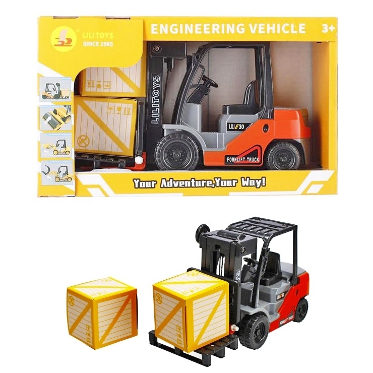 Vysokozdvižný vozík má knoflík, kterým se zvedají vidlice, paleta se sudy lze z vidlic vyjmout, vozidlo má funkci zpětného tahu, abych po tlačení vozidla dopředu pokračoval v jízdě sám. Vysokozdvižný vozík je nepostradatelným strojem na každém staveništi, skladu či hale. Díky stroji bude každá práce mnohem jednodušší a výrobky budou přepravovány bezpečně! Obsah soupravy: vysokozdvižný vozík, paleta se sudy. Výrobek je určen pro děti ve věku 3+.
