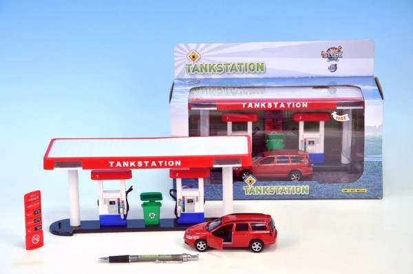 Čerpací stanice 30x13cm na baterie se zvukem se světlem a s autem 2 barvy v krabičce, 1 kus