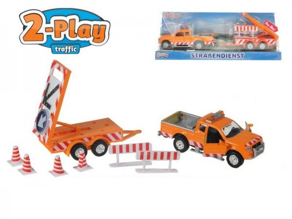 Auto silničáři s přívěsem kov 26cm na zpětné natažení na baterie se světlem v krabičce