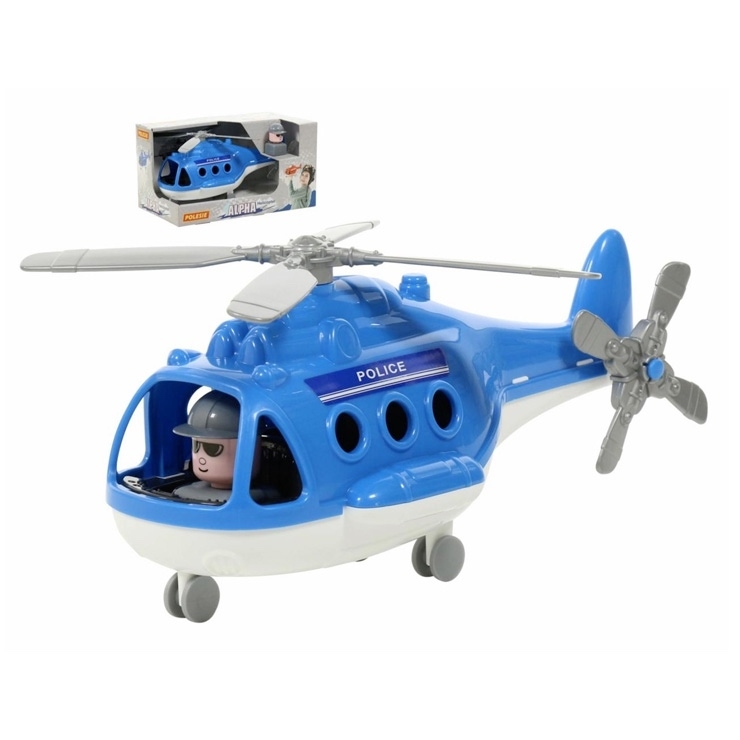 Wader vrtulník Alfa policejní je 29 cm dlouhý bez pohonu, s volným pohybem vrtulí. Vyroben je z pevného plastu. Hračka je certifikována pro děti od 3 let věku, vyrobená od renomované značky Wader quality toys. prečítať celé
