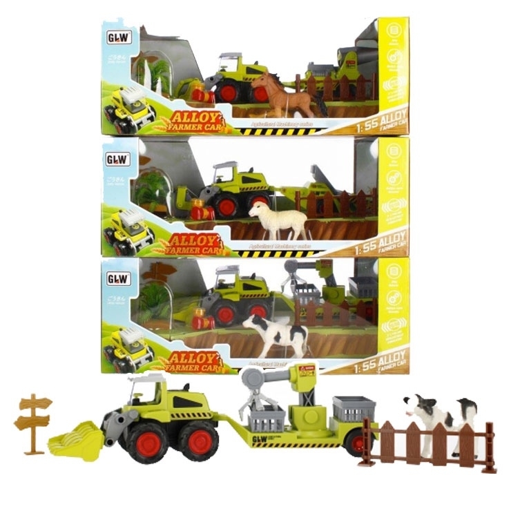 Traktor má namontován zemědělský stroj s pohyblivými částmi, stroj je od traktoru odpojen. Vše je vyrobeno z plastu a gumy.Obsah stavebnice: traktor, zemědělský stroj, 1x figurka krávy, příslušenství. Rozměry produktu - traktor (délka x výška x hloubka) [cm]: 15x8x8, rozměry balení (délka x výška...