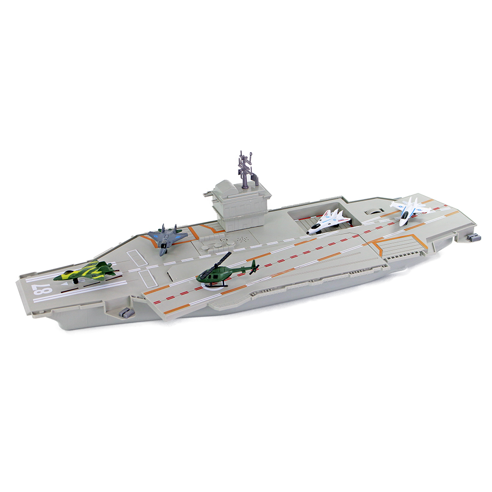 Zažij jedinečnou námořní bitvu na vlastní kůži! Z letadlové lodi startuje jedno letadlo za druhým a ty jsi ten, který tenhle vzdušný útok řídí! Veliká, 76 cm dlouhá loď, s 5 modely kovových letadel a věží. Pro zvukový a světelný efekt je nutné použití 3 ks baterií typu AG13, které jsou součástí balení.