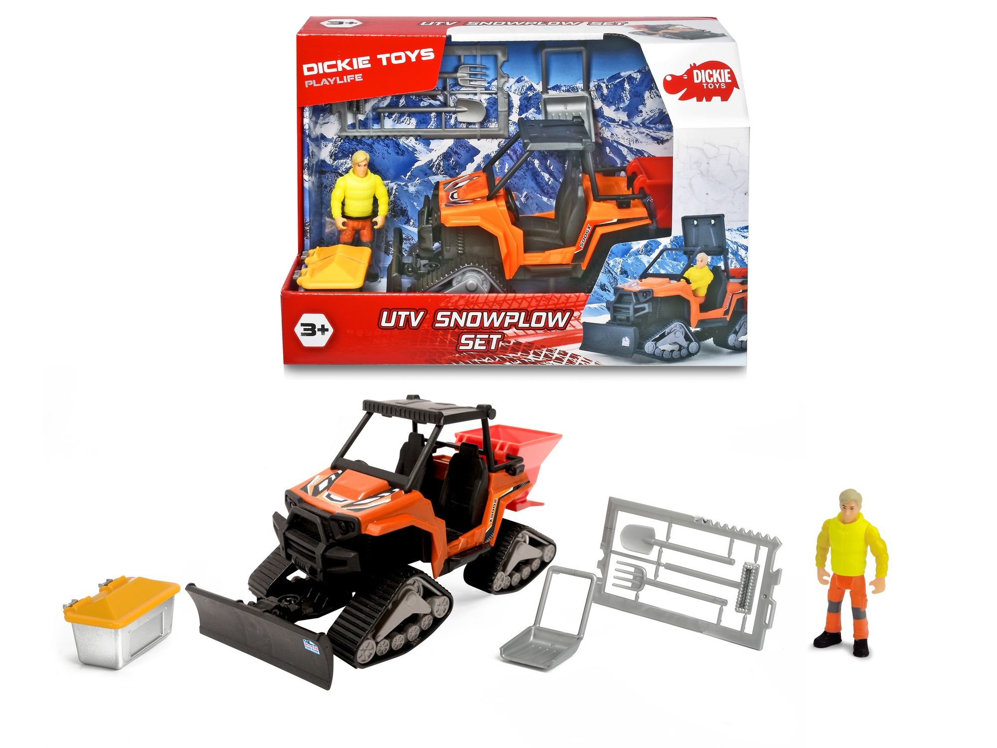 UTV na pásech do sněhu v měřítku 1:24, se sněhovým pluhem, s boxem na písek, s figurkou, lopatou na sníh a dalšími doplňky. Délka 21 cm. prečítať celé