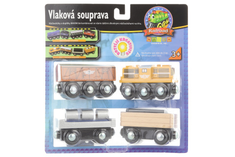 - Obsahuje dieselovú lokomotívu a tri vozne