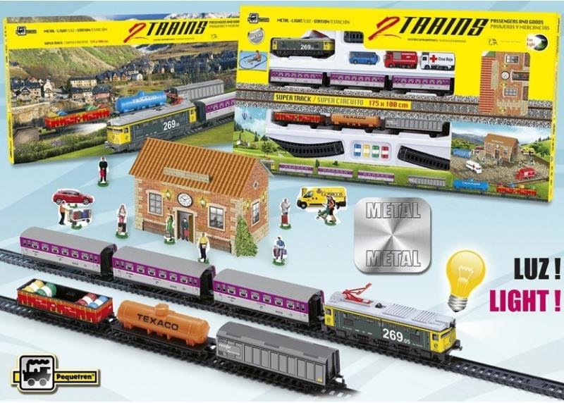 Kovový modelový vlak na baterie se skládá z lokomotivy a dvou souprav vozů (osobní tvořené třemi osobními vagony a nákladní tvořené třemi nákladními vagony) a jezdí po trati dlouhé 4,4 m. prečítať celé