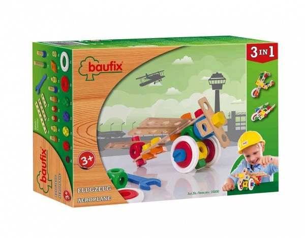 Dřevěná stavebnice Baufix 10200 Letadlo obsahuje 37 dílků, ze kterých si postavíte letadlo, koloběžku nebo vozík. Stavebnice rozvíjí dětskou kreativitu a myšlení a také napomáhá rozvoji jemné motoriky rukou.Lze kombinovat více stavebnic Baufix dohromady a postavit si cokoliv podle Vaší...