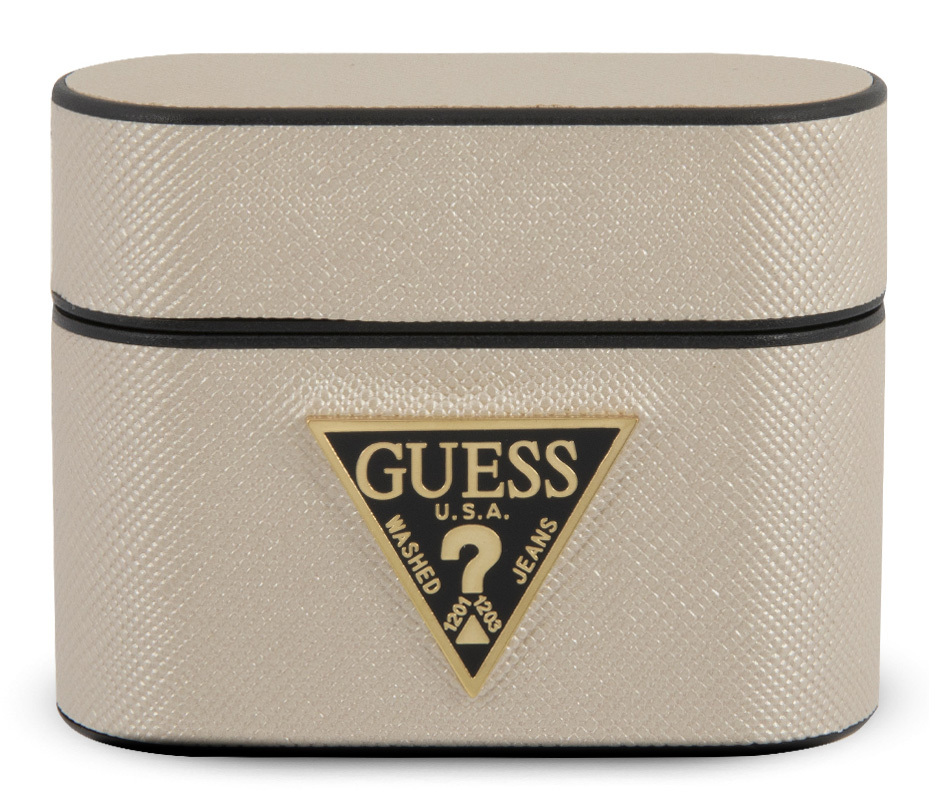 Pevné puzdro Guess Saffiano Apple Airpods Pro, béžové
